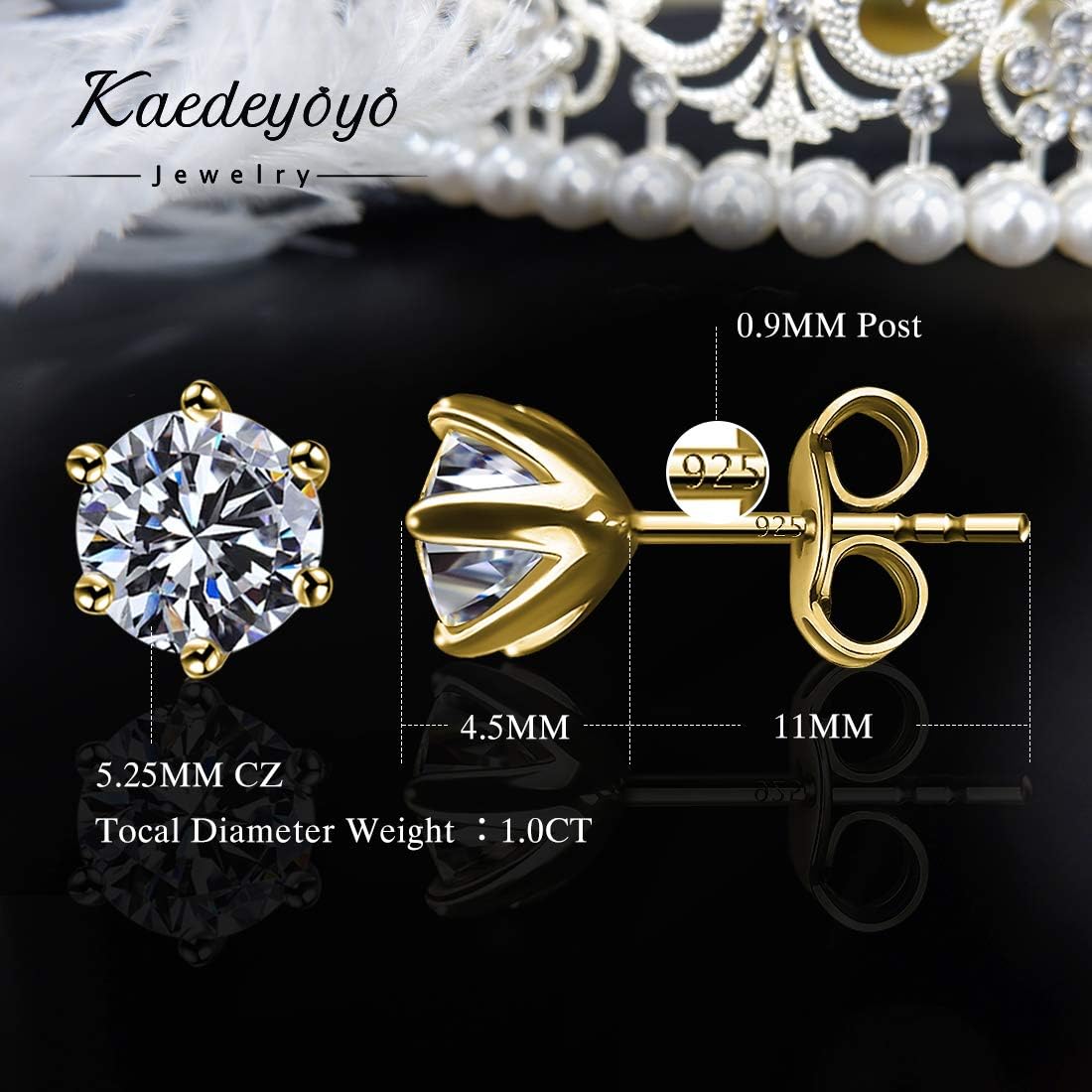 Plated Gold 18k Sterling Earrings Free Nickle Amp Hypoallergenic Girls Men Women For Earrings Stud Zirconia Cubic Round Diamond Simulated Silver Stud Fuzionchezsoi Com
